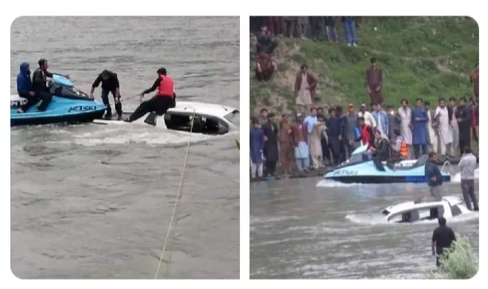 ‏ڈبل ڈور گاڑی نیلم ویلی کو کراس کرتے ہوئے پانی میں بہہ گئی